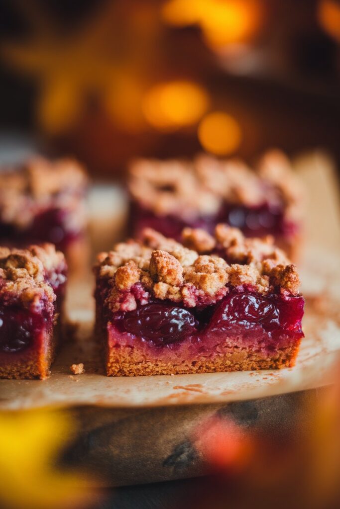 6. 30–35 Minuten backen, bis Streusel gold sind und Saft am Rand blubbert. Vor dem Schneiden kurz abkühlen lassen.