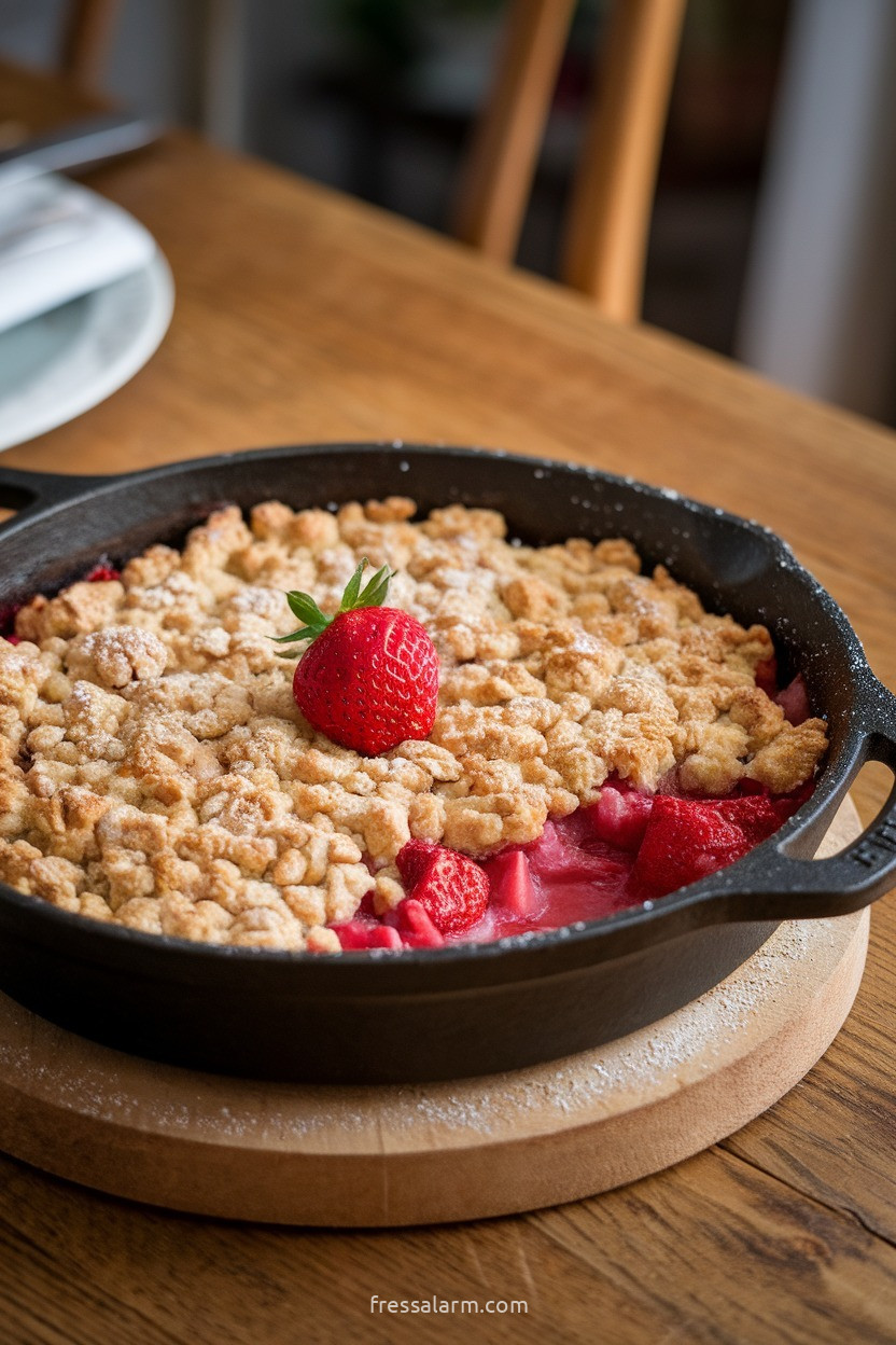 Der Erdbeer-Rhabarber-Crumble ist das entspannteste Fruchtdessert dieser Sammlung. 15 Minuten Arbeit, 35 Minuten Ofen, fertig. Das Ergebnis ist warm, knusprig, fruchtig und unwiderstehlich.