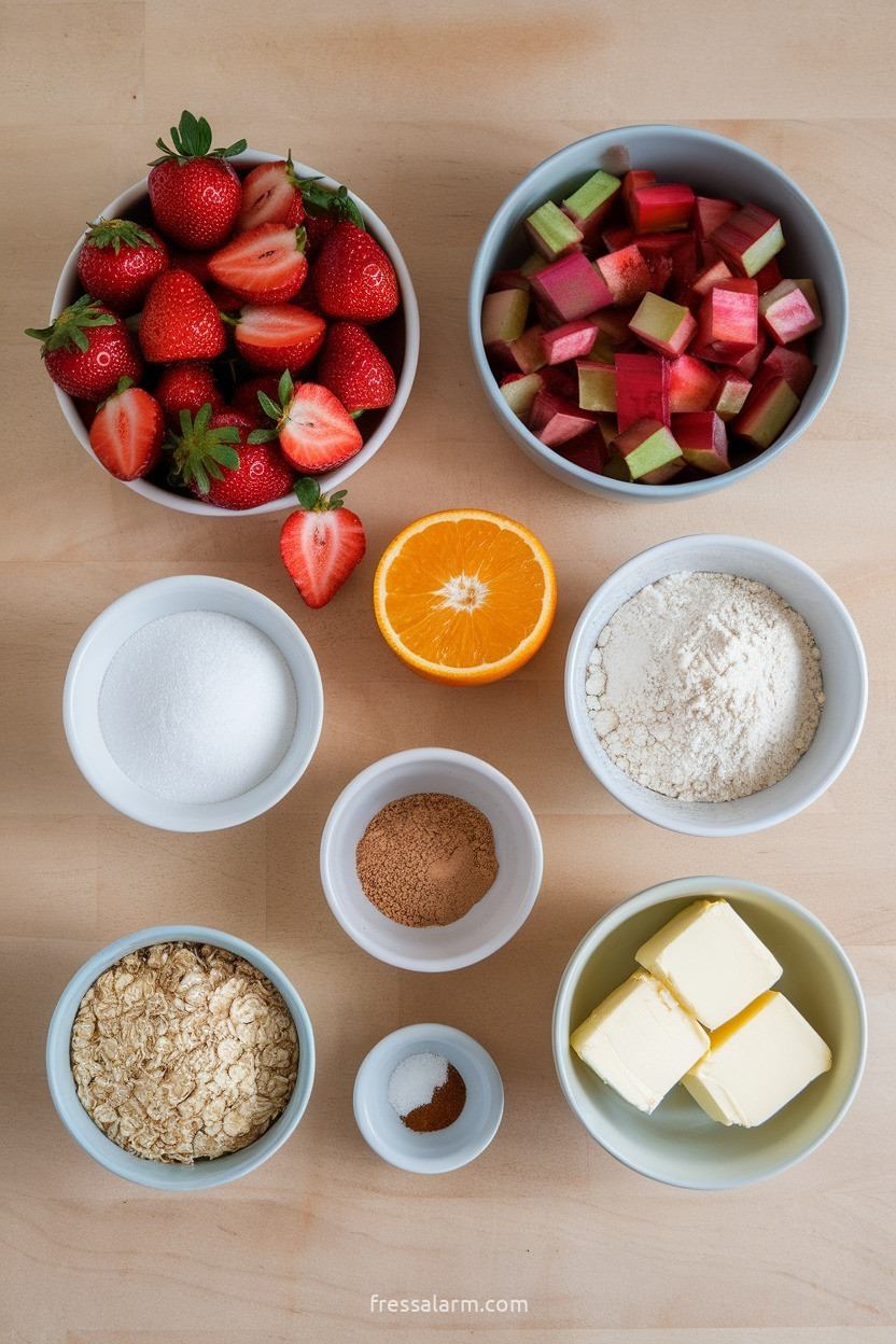 - Streusel: 150 g Mehl, 100 g kalte Butter (in Würfeln), 80 g brauner Zucker, 50 g Haferflocken, 1 Prise Zimt