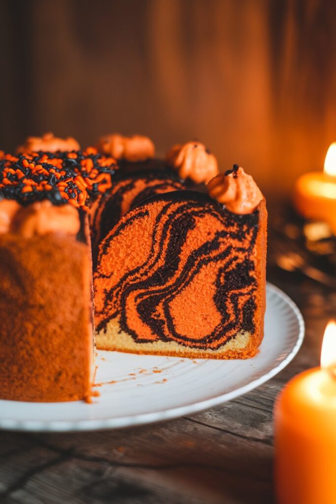 • Halloween Marmorkuchen Rezept – Orange & Schwarz marmoriert