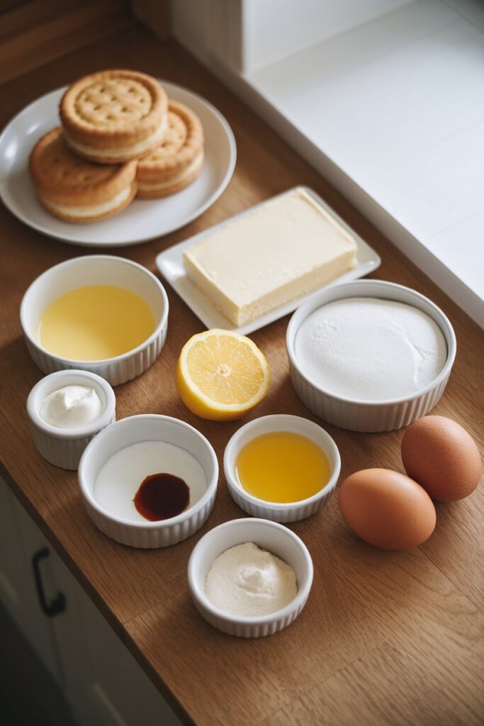Zitroniger: Zitronenabrieb auf 2 TL erhöhen und den Saft auf 2 EL. Leichter: 300 g Frischkäse durch 300 g Quark (20 % F.i.Tr.) ersetzen; Textur wird etwas luftiger. Glutenfrei: Glutenfreie Kekse nutzen und den Butteranteil leicht erhöhen. Extra-glatt: Mit Wasserbad backen – gleichmäßigere Hitze und weniger Risse.