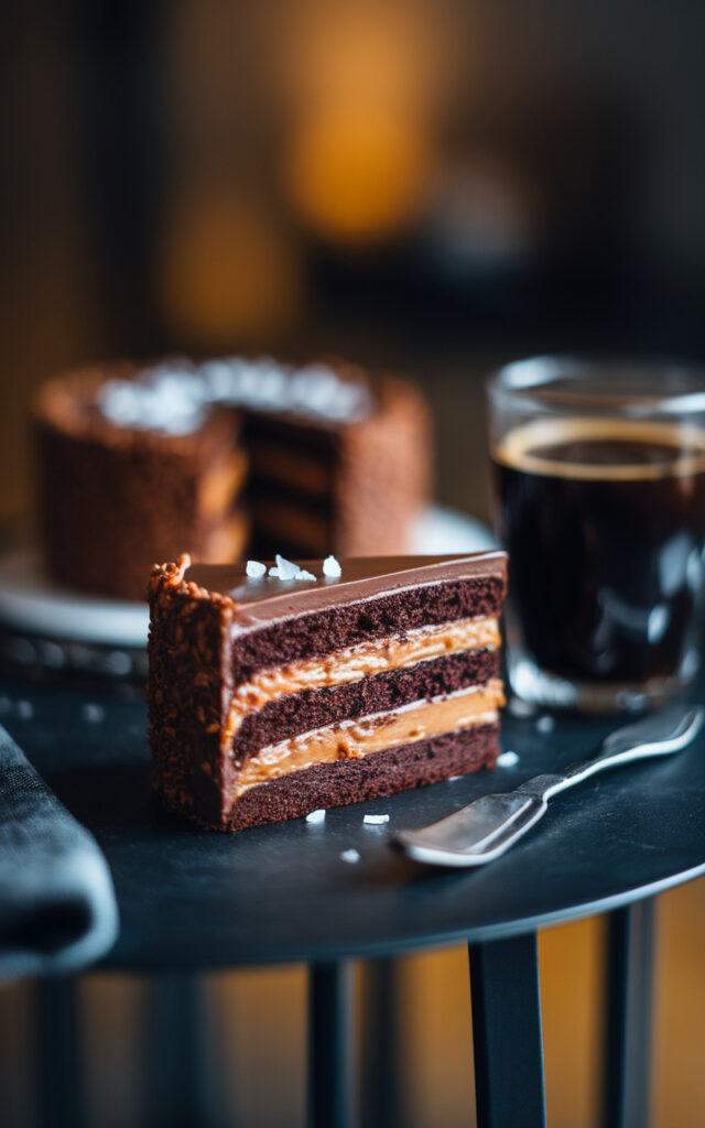 Der Salted Caramel Chocolate Cake ist ein Meisterstück des modernen Dessertdenkens – dunkle Intensität, goldene Süße, Salzakzente und Schokoladentiefe in perfekter Balance.