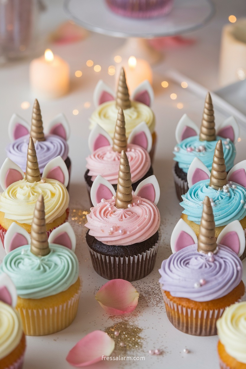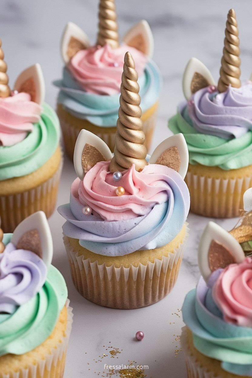 Einhorn-Cupcakes sind das magischste Dessert dieser Sammlung – ein weißer Vanille-Cupcake verwandelt sich durch Regenbogen-Swirl-Frosting in Rosa, Lila und Mintgrün, ein gedrehtes goldenes Fondant-Horn und zwei kleine Fondant-Öhrchen in ein zauberhaftes Einhorn-Porträt. Diese Cupcakes sind der Wunsch von Kindern weltweit und ein garantierter Social-Media-Hit.