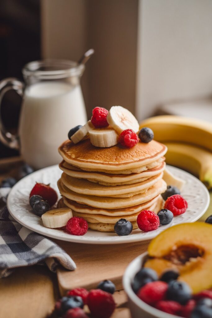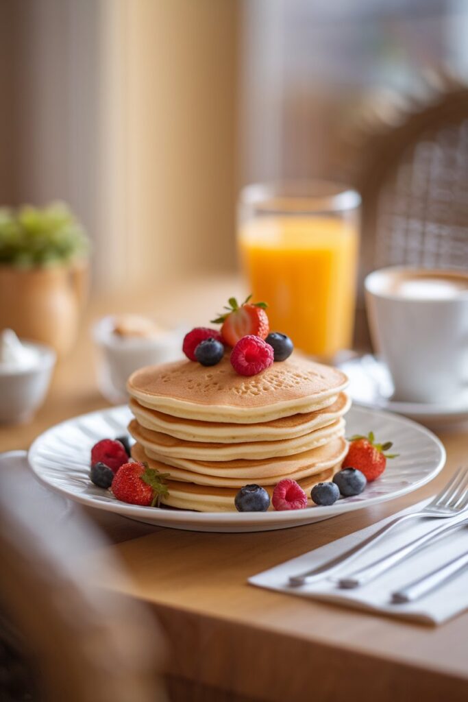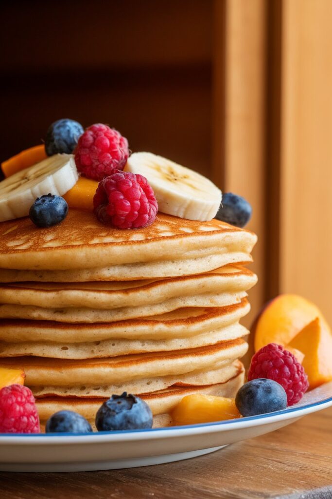 Pancakes mit Früchten sind der Inbegriff eines gemütlichen Frühstücks. Fluffig und goldbraun gebacken, kombiniert mit frischen Früchten deiner Wahl, entstehen kleine Kunstwerke, die nicht nur toll aussehen, sondern auch fantastisch schmecken. Ob zum Sonntagsfrühstück, als süße Hauptmahlzeit oder beim Brunch mit Freunden – dieses Rezept liefert dir die perfekte Grundlage.