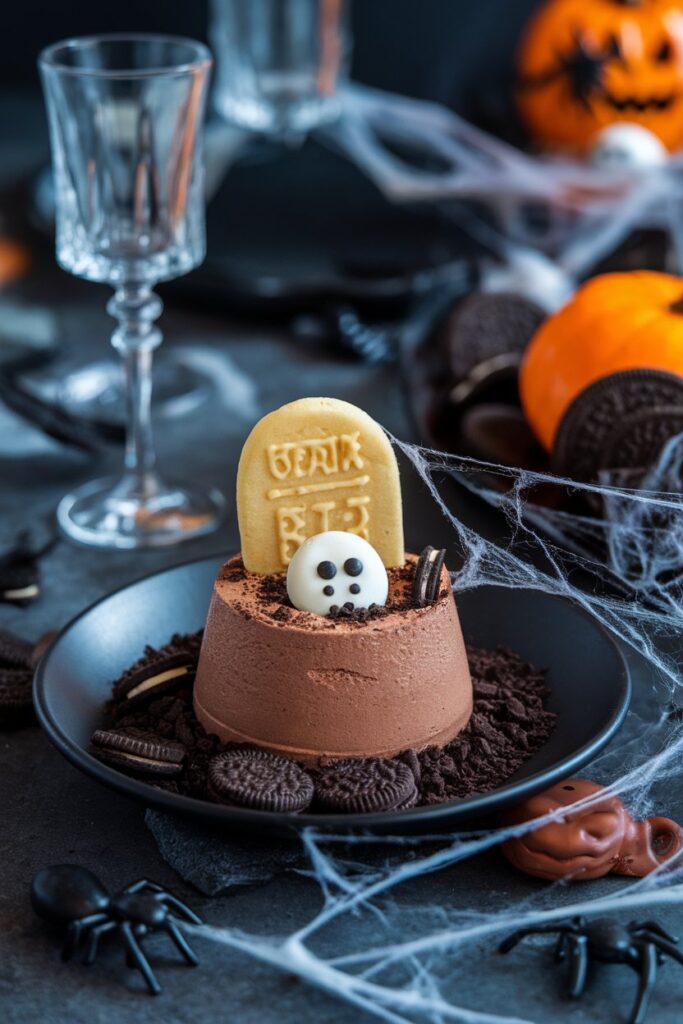 Dieses Schoko-Mousse mit Grabstein-Keks ist ein Dessert, das sowohl geschmacklich als auch optisch überzeugt. Mit seiner luftigen Konsistenz, dem intensiven Schokoladengeschmack und der gruseligen Optik ist es ein Highlight auf jeder Halloween-Party. Einfach vorzubereiten, cremig und spooky zugleich.