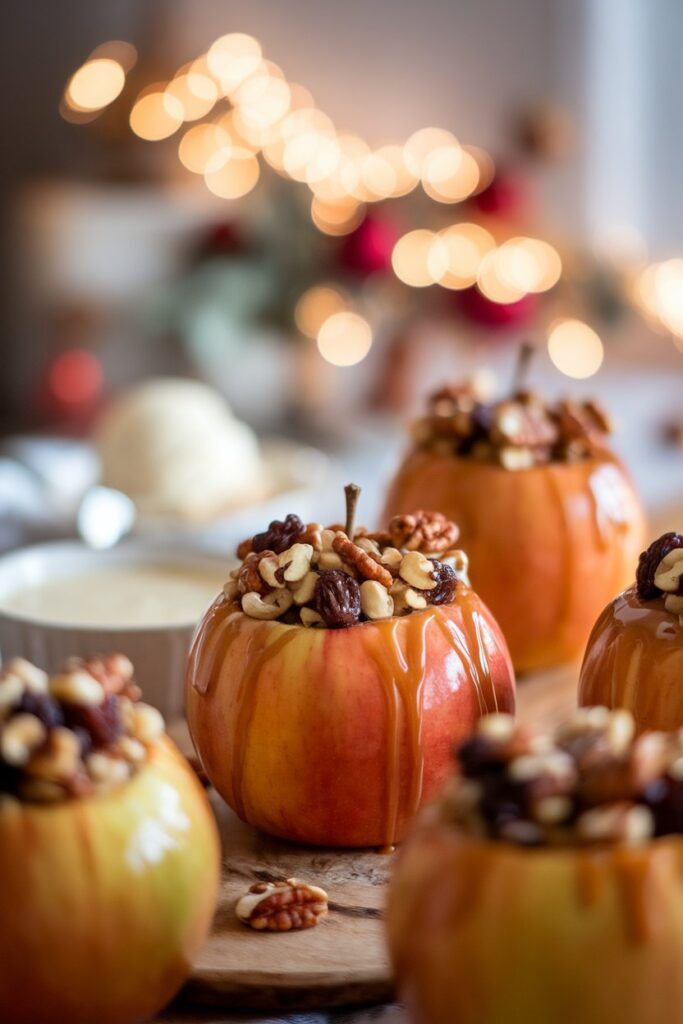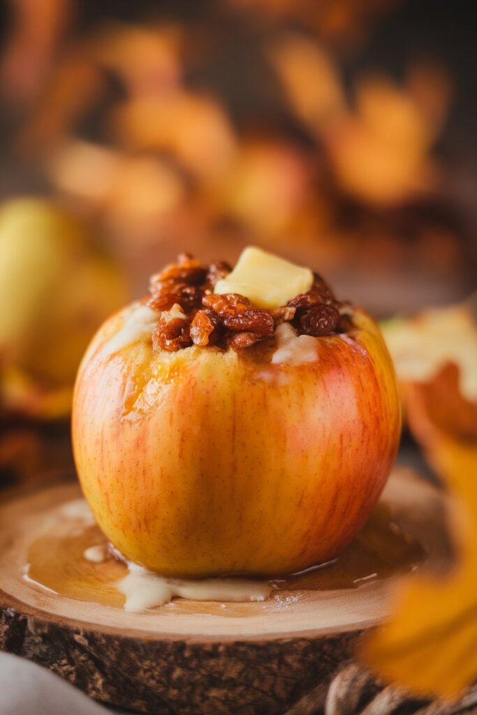 - Backen: Gefüllte Äpfel in eine ofenfeste Form setzen und 25–30 Minuten backen, bis sie weich sind, aber nicht zerfallen. Zwischendurch mit etwas ausgetretenem Saft übergießen.