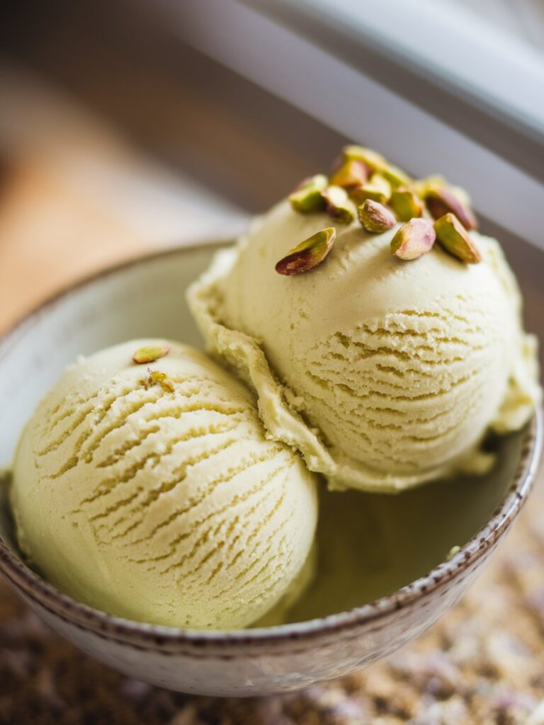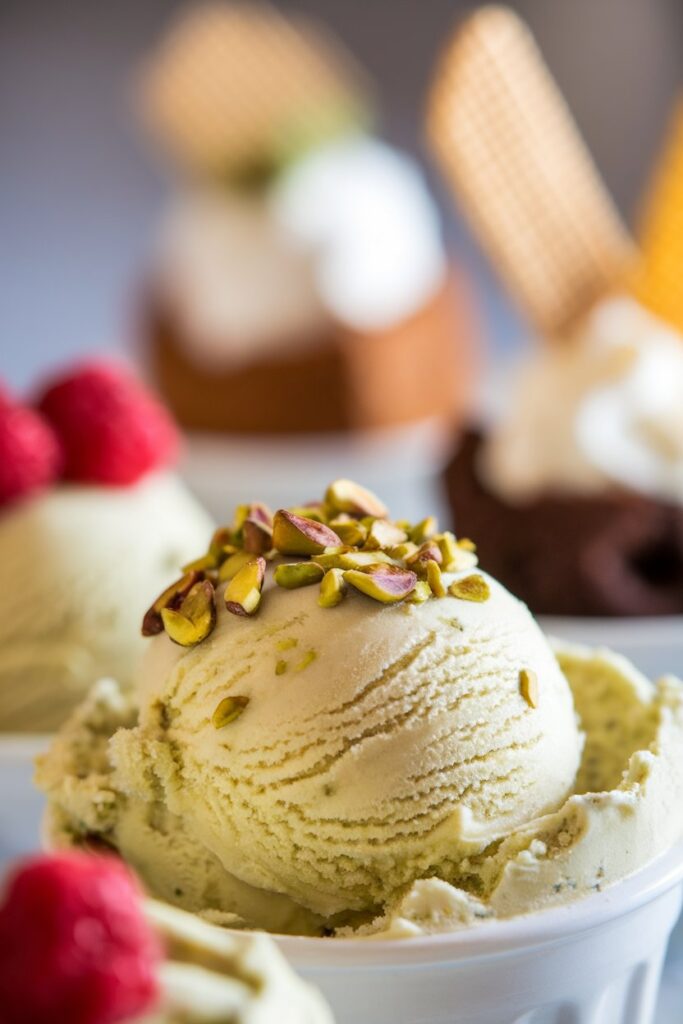 Pistazieneis ist pur ein Genuss, passt aber auch hervorragend zu frischen Früchten wie Himbeeren oder Erdbeeren. Mit Schlagsahne und einer Waffel serviert wird es zum perfekten Dessert. Auch als Beilage zu Brownies oder Schokoladenkuchen sorgt es für einen köstlichen Kontrast. Ein kleiner Hauch gehackter Pistazien als Topping unterstreicht das Aroma zusätzlich.