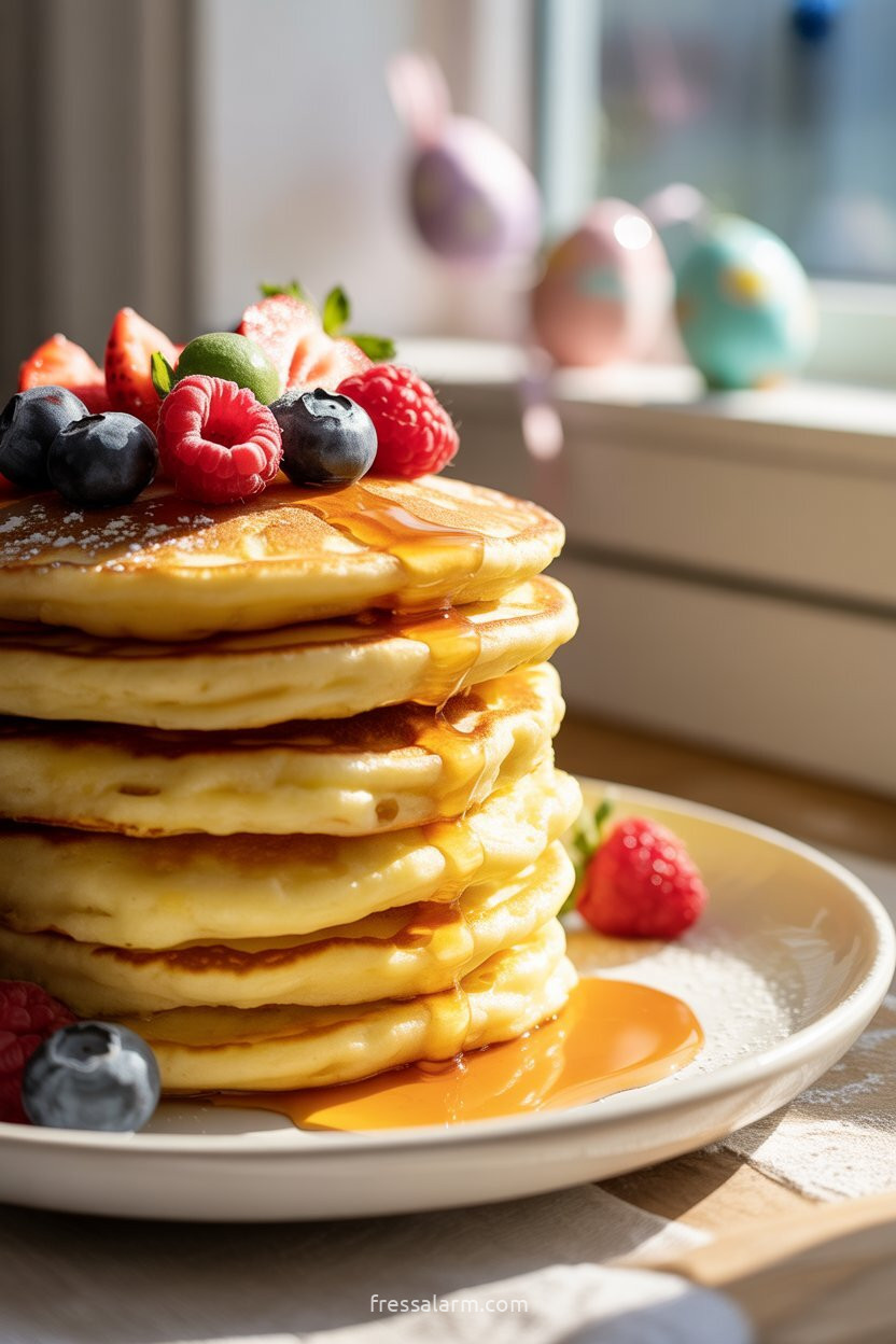 - Mit Beeren, Puderzucker und etwas Ahornsirup servieren. Die Zitrone bringt Frische in den Teig, der Ricotta hält alles saftig und weich. Genau deshalb passen diese Pancakes so gut zum Osterbrunch: süß, aber nicht schwer.