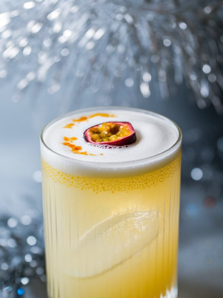 Drink 2: Passionfruit Gin Fizz (mit feinem Schaum, optional ohne Ei)
