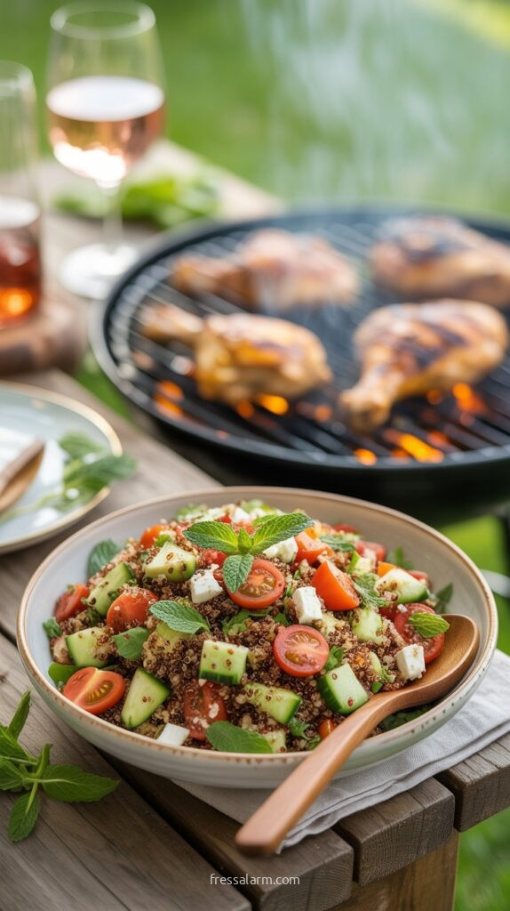 Als leichte Grillbeilage für Gäste, die kohlenhydratärmer essen möchten, ist der Quinoa-Salat die ideale Ergänzung zu einem klassischen Grillmenü. Er steht neben Kartoffelsalat und Coleslaw als dritte Dimension der Grillbeilagen-Vielfalt und spricht die gesundheitsbewussten Gäste an.