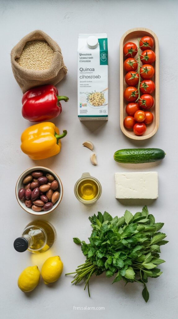 Dieses Rezept zeigt eine mediterrane Quinoa-Grillbeilage mit gerösteten Paprika, Kirschtomaten, Gurke, Feta und einem Zitronen-Kräuter-Dressing – frisch, ausgewogen und am Grillabend der Geheimtipp für alle, die nach etwas Leichterem suchen.