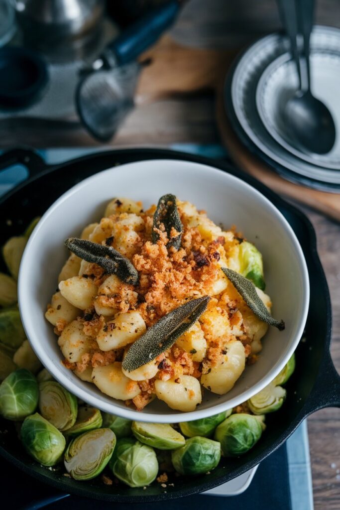 Rezept 4: One-Pan Gnocchi mit Rosenkohl, Salbei & Zitronenbröseln