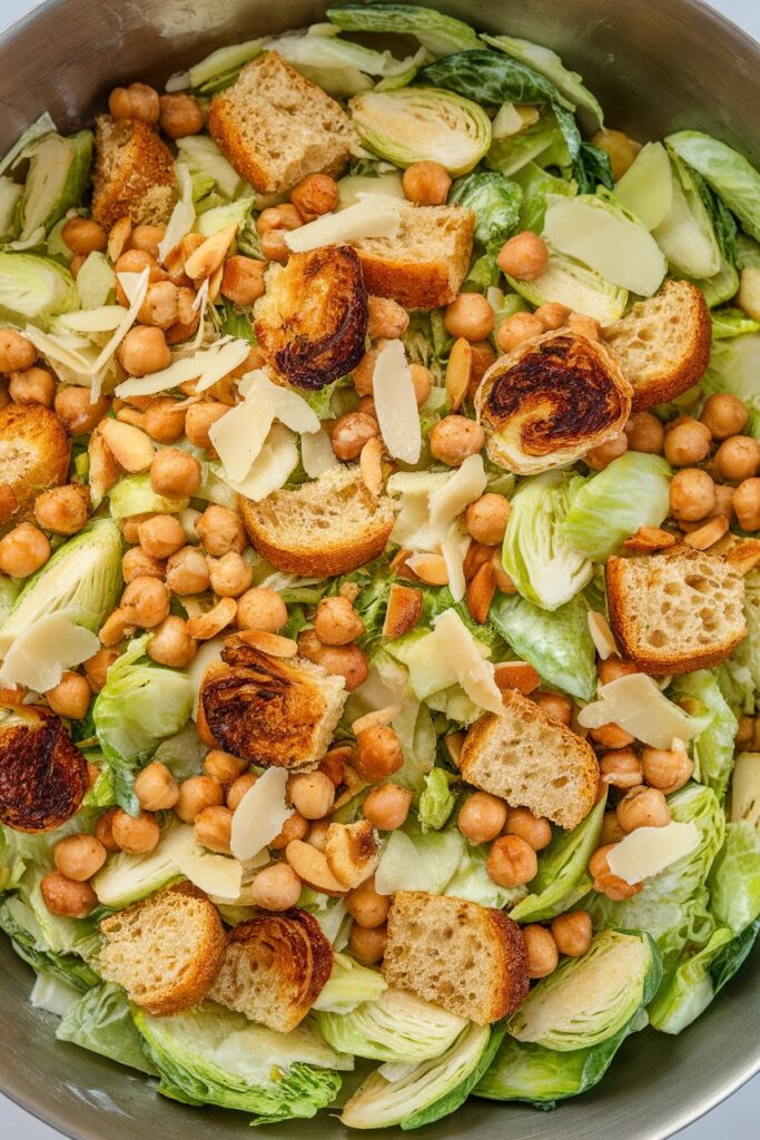 Rezept 5: Caesar-Style Rosenkohl-Salat (roh gehobelt) mit knusprigen Kichererbsen