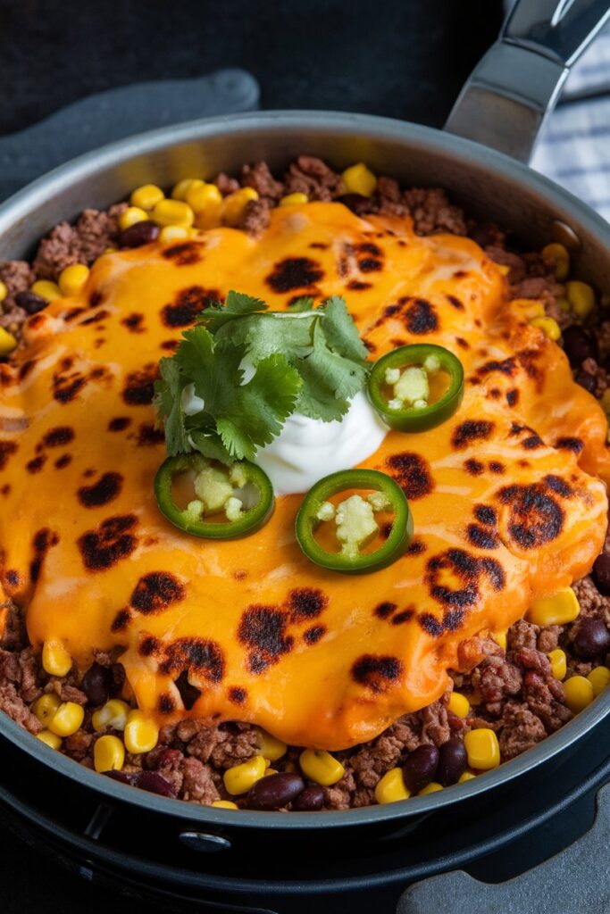 Idee 3: Tex-Mex – Mais, Bohnen, Jalapeños, Rinderhack & Cheddar