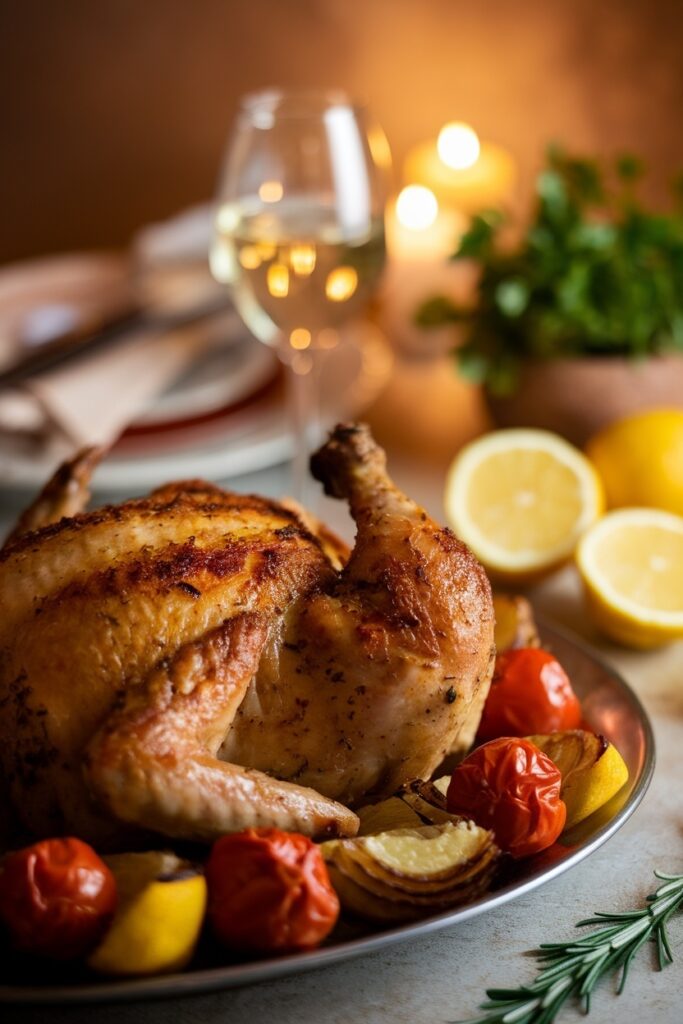 Zitronen-Hühnchen mit Kräutern ist ein Gericht, das beweist, dass Großartigkeit keine Kompliziertheit braucht. Es ist ein zeitloser Klassiker der mediterranen Küche – saftig, aromatisch, knusprig und von einer Frische, die jeden Tisch erhellt.