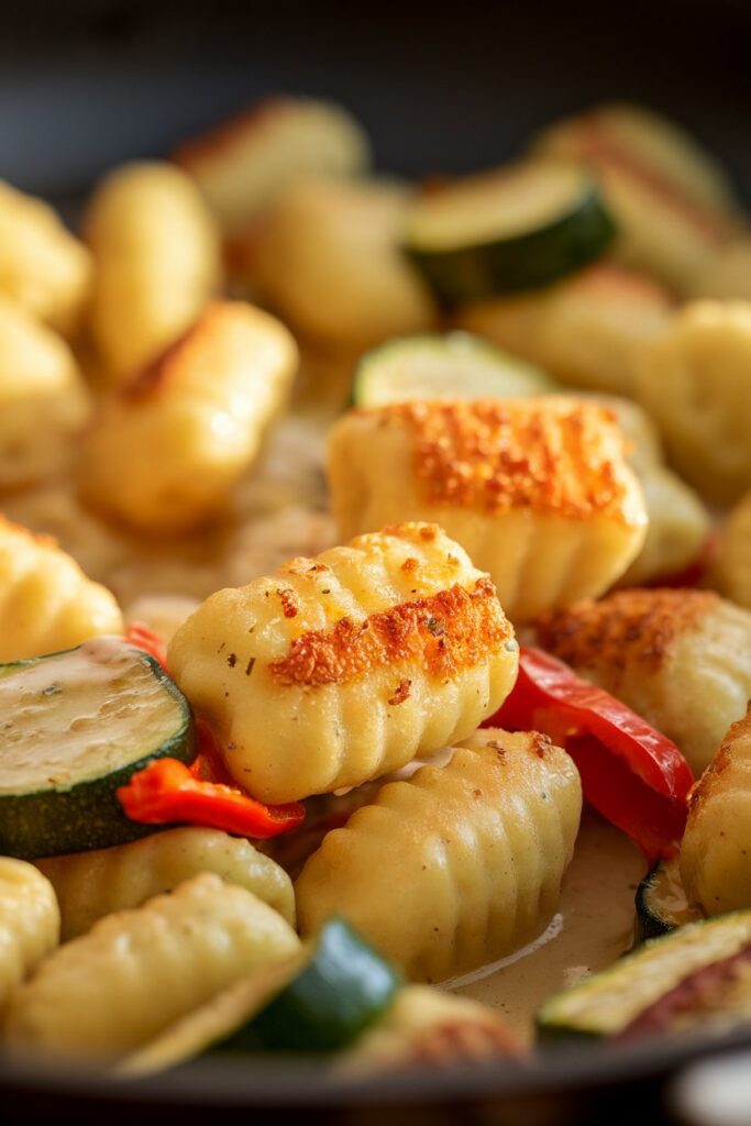 Der häufigste Fehler ist, die Gnocchi zu früh zu wenden – dann bräunen sie nicht richtig. Lass sie zunächst in Ruhe anbraten. Zu viel Sahne kann das Gericht verwässern; lieber sparsam beginnen und bei Bedarf nachgießen. Verwende eine große Pfanne, damit alles gleichmäßig brät.