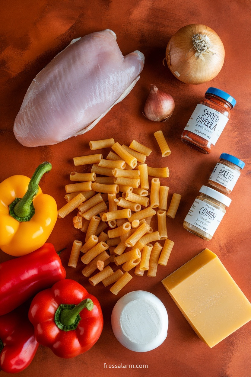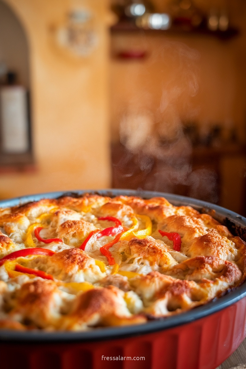 Hähnchen und Paprika ist eine Kombination, die in der mediterranen, ungarischen und spanischen Küche gleichermaßen zuhause ist – Poulet au Poivron in Frankreich, Paprikash in Ungarn, Pollo con Pimientos in Spanien. Überall wo diese Zutaten zusammentreffen, entsteht Wärme, Farbe und ein tief aromatisches Gericht. Im Auflauf verbinden sie sich mit der Pasta zu einem vollständigen, sättigenden Gericht in einem Behälter.