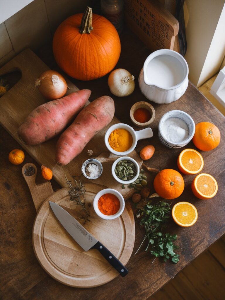Kürbis-Suppen sind in vielen Kulturen beliebt, besonders im Herbst, wenn Kürbis Saison hat. Süßkartoffeln ergänzen den Kürbis nicht nur geschmacklich, sondern auch durch ihre Nährstoffe. Die Kombination beider Gemüsesorten ist typisch für moderne Wohlfühlgerichte, die sowohl nahrhaft als auch wärmend sind. Inspiriert ist diese Variante von asiatisch angehauchten Rezepten, die Kokosmilch und Ingwer als Basis nutzen.