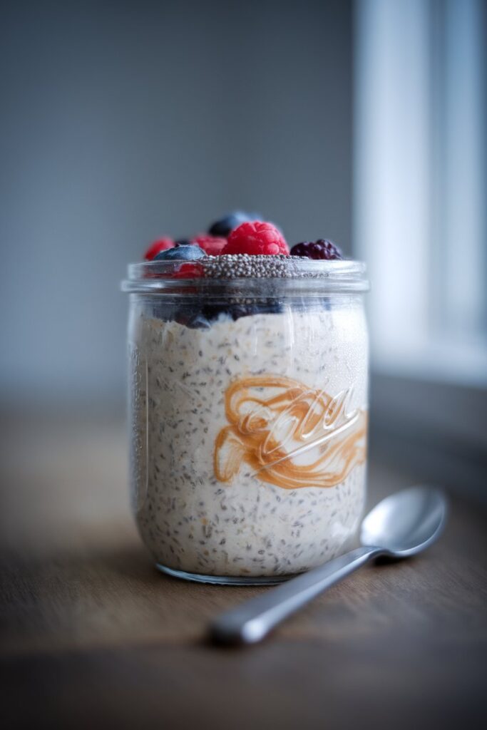 Rezept 1: Overnight Oats mit Beeren & Mandelmus