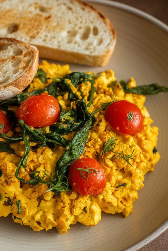 Rezept 2: Rühr-Tofu mit Spinat, Tomaten & Kurkuma