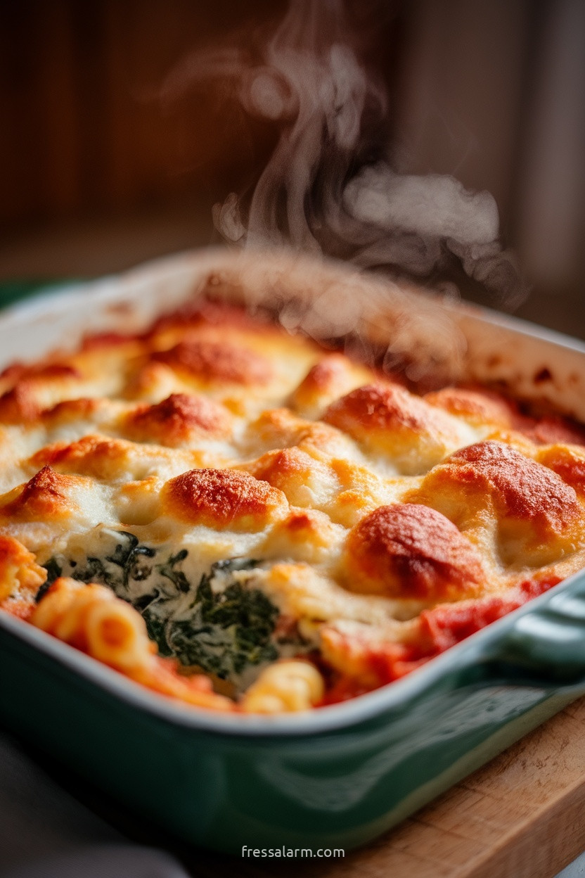 Vegetarischer Nudelauflauf mit Spinat und Ricotta ist das Gericht, das zeigt: Auf Fleisch zu verzichten bedeutet keinen Verzicht auf Genuss. Cremig, aromatisch und mit einer Käsekruste, die jeden begeistert.