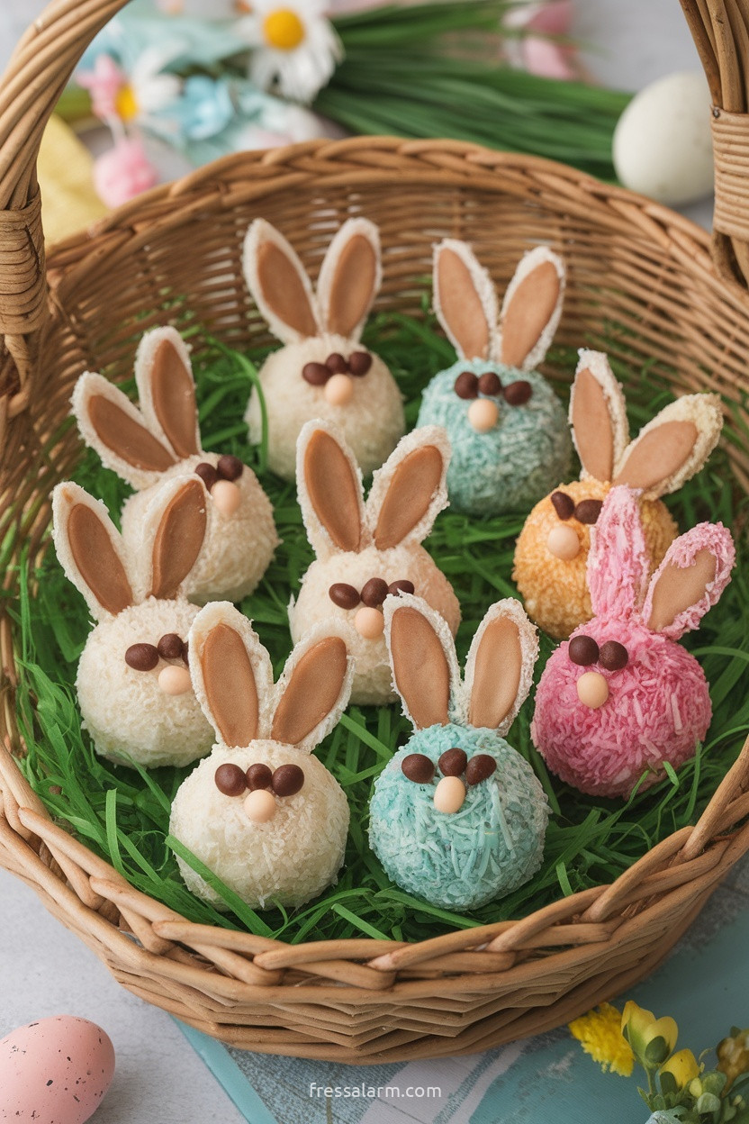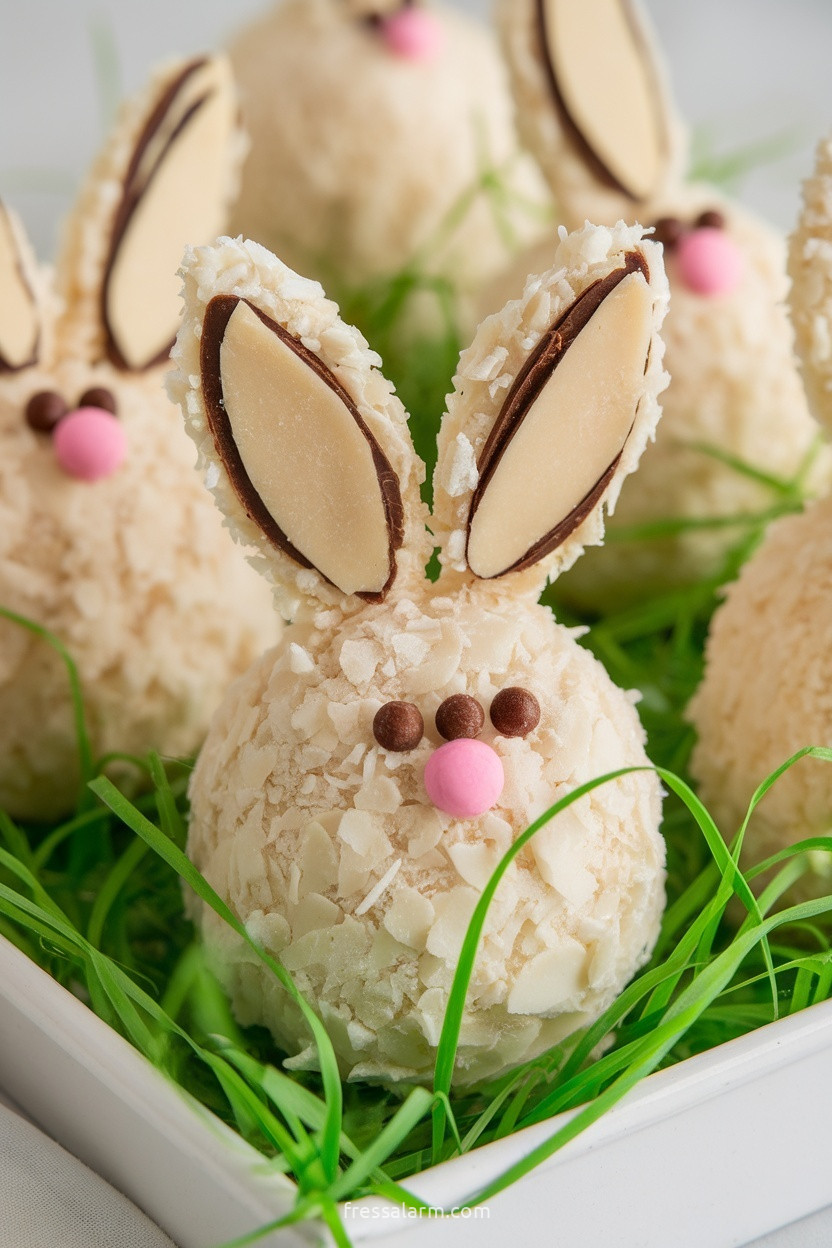 Kokos-Osterhasen-Kugeln sind das perfekte No-Bake Oster-Dessert: keine Hitze, kein Ofen, keine Komplikation – nur Mischen, Formen, Kühlen und Dekorieren. Weiße Kokosbällchen werden mit einfachen Zutaten zu bezaubernden kleinen Osterhasen verwandelt und sind in 20 Minuten fertig.