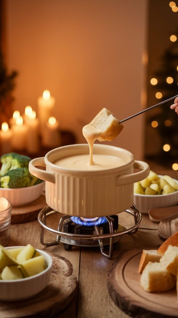 - Zum Dippen: 1 Baguette (in 2–3 cm Würfeln, leicht angetrocknet), blanchiertes Gemüse (z. B. Brokkoli-Röschen), kleine Kartoffeln