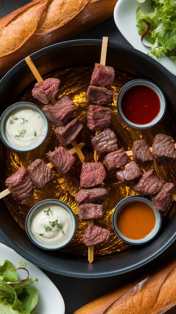 Rezept 3: Fondue Bourguignonne (im Öl) mit Dips & Beilagen