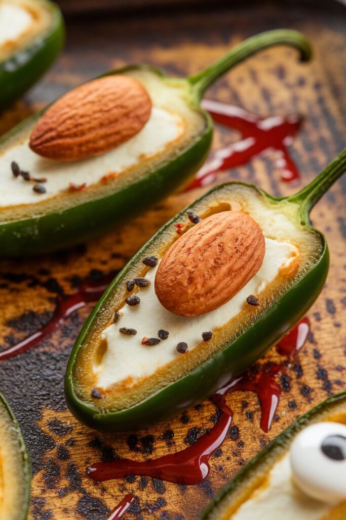 Rezept 4: Hexenfinger-Jalapeños (gefüllt, mit Mandel-„Nagel“)